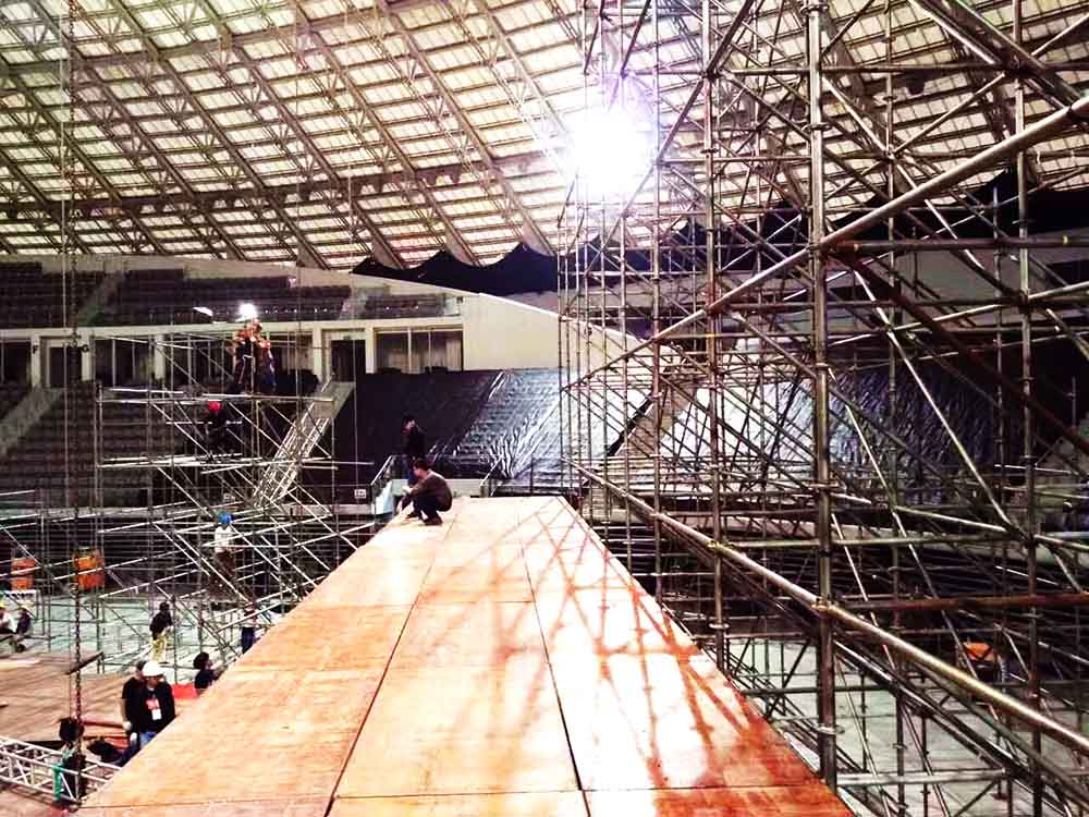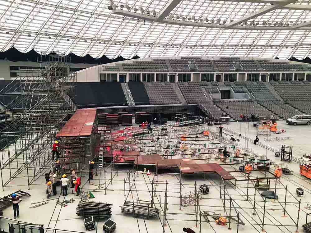 二、一般來說,舞臺臺板有1.22米*2.44米和1米*2米兩種主要規(guī)格。那么你設(shè)計基礎(chǔ)臺,就要遵循這樣的尺寸,拿1.22米*2.44米的規(guī)格臺板來說,它下面的力壓架能搭出的高度一般來說最低是0.8米,然后常用的是1.3米,1.8米等。那你熟知這些數(shù)值,你就不會胡來,一層基礎(chǔ)臺0.8米,二層基礎(chǔ)臺1.3米。三層1.8米。 以此類推。既省時又省力。(不包括異形臺)