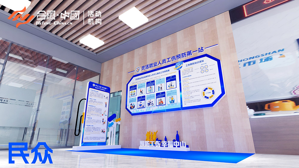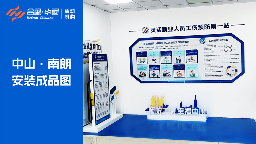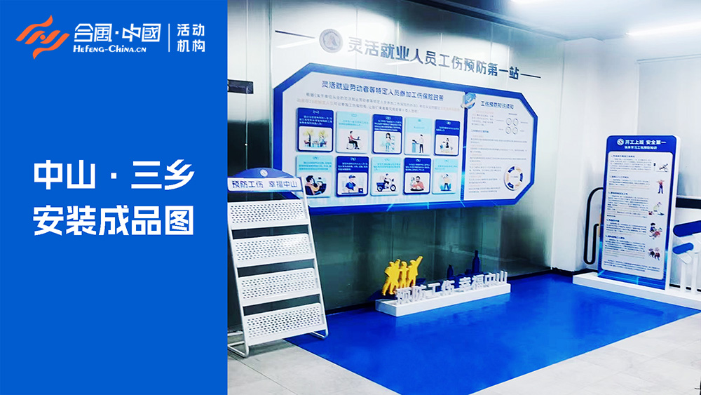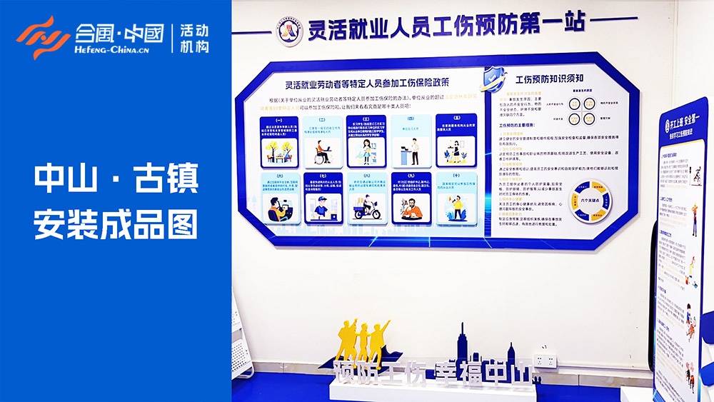 「合風(fēng)中國(guó)」廣東省廣州市中山市特裝設(shè)計(jì)制作安裝慶典活動(dòng)策劃禮儀演出公司4A執(zhí)行服務(wù)公關(guān)傳媒廣告案例,中山市靈活就業(yè)人員工傷預(yù)防第一站,主題為“預(yù)防工傷·幸福中山”,全程由「合風(fēng)中國(guó)」中山活動(dòng)策劃公司設(shè)計(jì)制作安裝完成,中山市本次廣告裝潢特裝設(shè)計(jì)制作分四個(gè)站,分別是三鄉(xiāng)、南朗、民眾、古鎮(zhèn)。設(shè)計(jì)制作布置的內(nèi)容分三大板塊,分別有“靈活就業(yè)勞動(dòng)者等特定人員參加工傷保險(xiǎn)政策、工傷預(yù)防知識(shí)須知、開(kāi)工上班安全第一快來(lái)學(xué)習(xí)工傷預(yù)防知識(shí)”。